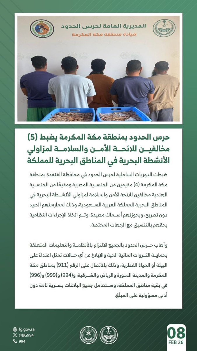 أعلنت الجهات الأمنية في منطقة مكة المكرمة عن القبض على خمسة مقيمين، أربعة منهم من الجنسية المصرية وواحد من الجنسية الهندية، وذلك إثر تورطهم في جرائم تزييف عملات نقدية والترويج لها. ووفقًا للبيان الأمني، تمكنت الجهات المختصة من رصد نشاط الجناة بعد ورود معلومات تفيد بقيامهم بتصريف عملات نقدية مزيفة والتعامل بها في عدد من المواقع. وأسفرت المتابعة الأمنية عن تحديد هويات المتورطين وتعقبهم والقبض عليهم متلبسين بحيازة كميات من العملات المزيفة كانت معدة للترويج.