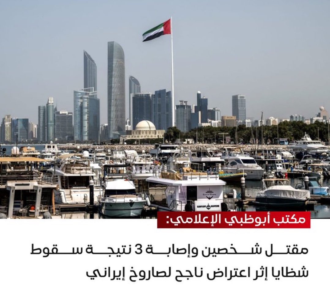 المكتب الإعلامي لإمارة أبوظبي: مقتل شخصين وإصابة ثلاثة إثر حطام ناجم عن اعتراض صاروخ باليستي | شبكة نفود الإخبارية