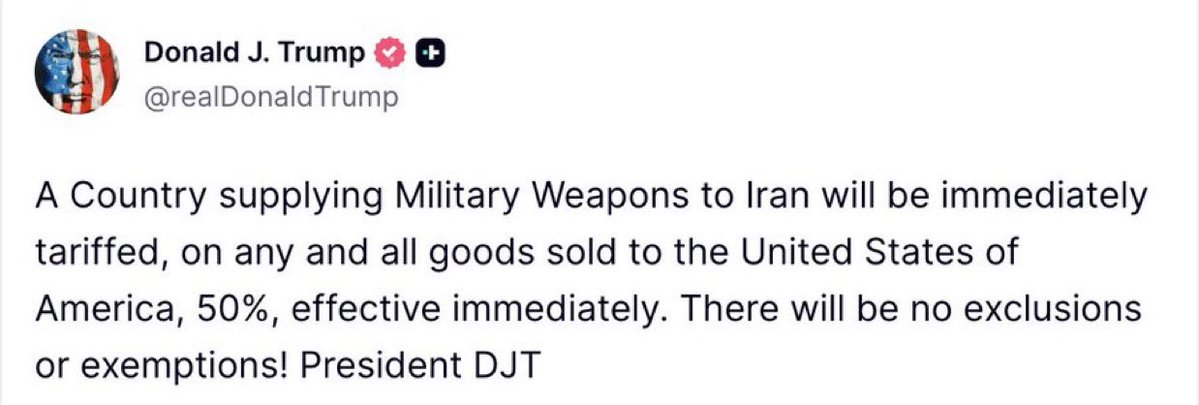 ترامب يعلن فرض تعريفة جمركية فورية 50% على أي دولة تزود إيران بأسلحة