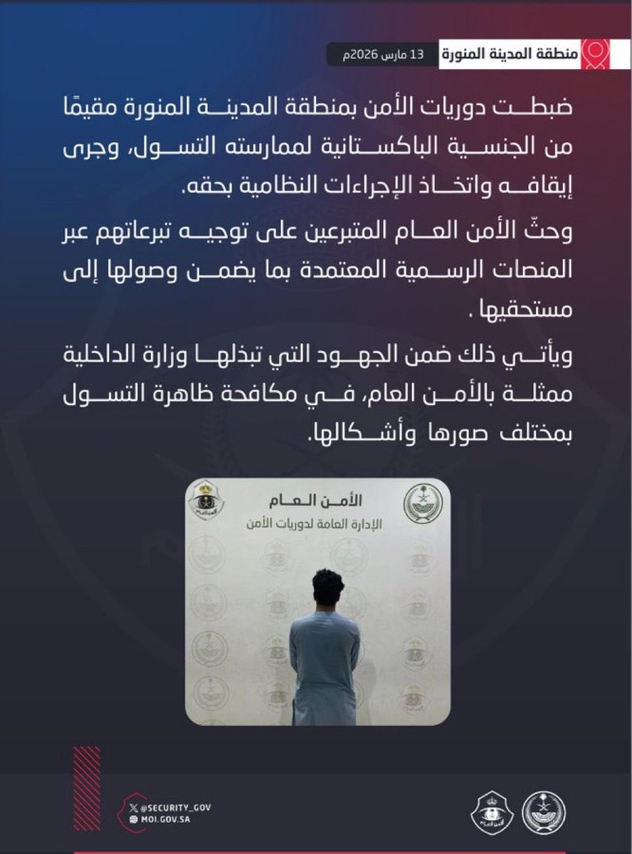 خلفية وإجراءات متوقعة تُعد المدينة المنورة من الولايات التي تتعاون فيها الأجهزة الأمنية مع الجهات المدنية والمجتمعية للحفاظ على الأمن العام. وعند ضبط أي حالة، يتم الاحتفاظ بسجل للإجراءات، وإتاحة المعلومات الرسمية للجهات المختصة، بما في ذلك النيابة والشرطة، التي يمكنها إصدار بيانات توضح الوقائع إن استدعى الأمر المصلحة العامة أو الرأي العام.