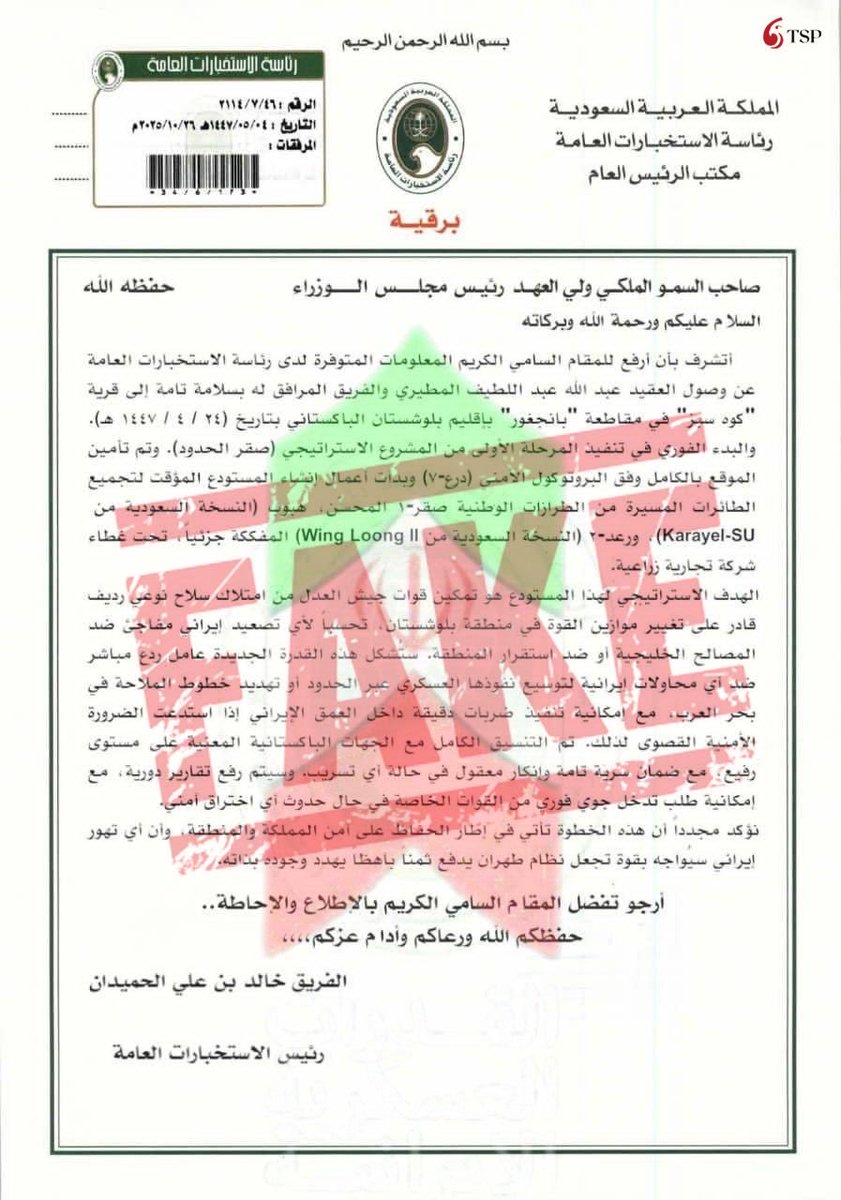 تداولت صفحات ومستخدمون على منصات التواصل الاجتماعي برقية مزعومة تزعم وجود «مشروع سعودي سري» في باكستان يهدف إلى تجهيز عناصر مسلحة بطائرات مسيّرة لاستخدامها في استهداف إيران. وفق متابعة شبكة نفود الإخبارية وتحقيقها الميداني والرقمي، تبين أن البرقية مفبركة ولا تستند إلى أي مصدر رسمي أو دليل وثائقي موثوق.