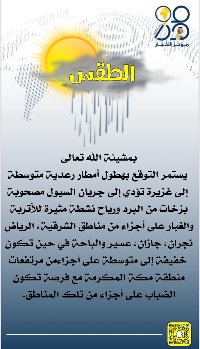 نفود الإخبارية — أصدر المركز الوطني للأرصاد تحديثه اليومي بشأن حالة الطقس، متوقعاً تأثيرات متباينة على مناطق المملكة تبدأ بظهور سحب رعدية يرافقها هطولات مطرية ونشاط في الرياح السطحية في أجزاء من الجنوب الغربي والغرب، في حين يستمر التأثر بموجات غبار محلية عبر المناطق الوسطى والشرقية. وذكر التحديث أن الفرصة واردة لهطول أمطار رعدية من متوسطة إلى غزيرة على مرتفعات جازان وعسير والباحة، قد تصحبها سيول أو تجمعات مائية مؤقتة في الشعاب والوديان. كما أشار إلى احتمالية تشكل سحب رعدية محدودة على أجزاء من مكة المكرمة والطائف، مع توفر سحب ركامية محلية قد تؤدي إلى هطول متفرق. في المناطق الوسطى والشرقية تمتد تأثيرات نشاط الرياح السطحية المثيرة للأتربة والغبار، ما يؤدي إلى انخفاض مدى الرؤية الأفقية خصوصاً على الطرق السريعة المفتوحة والمناطق المكشوفة. وحذر المركز من تدنٍ في مدى الرؤية خلال فترات اشتداد الغبار، داعياً السائقين إلى توخي الحيطة والحفاظ على مسافات أمان مناسبة. أما على سواحل البحر الأحمر فتهيمن أحوال بحرية معتدلة إلى مائج أحياناً، مع ارتفاع طفيف في الأمواج خصوصاً غرب وجنوب غرب السواحل. وعلى الخليج العربي، توقَّع المركز هدوءاً نسبياً مع تموجات سطحية قد تصل لحدوص اضطراب بسيط على بعض المساحات الشمالية. نصائح السلامة: أوصى المركز بضرورة متابعة النشرات المحلية ووسائل الإعلام الرسمية، والابتعاد عن مجاري السيول والشعاب أثناء هطول الأمطار، وتثبيت الأغراض المكشوفة في المواقع المعرضة للرياح. كما دعا إلى تقليل الأنشطة البحرية الترفيهية في حال ملاحظات ارتفاع الأمواج أو تحذيرات إبحار. ردود فعل محلية: شهدت بعض المحافظات تحركات سريعة من الجهات البلدية والدوريات الأمنية التي قامت بتسيير دوريات مراقبة، والتحذير المبكر لسكان المناطق المعرضة، إلى جانب فتح ممرات طوارئ في أماكن يمكن أن تتأثر بتجمعات المياه. وفي عدد من المدن الساحلية كثفت الجهات المسؤولة نشر تعليمات السلامة والتنسيق مع فرق الدفاع المدني. خاتمة: يبقى التوصية الأهم بالاعتماد على المصادر الرسمية لمتابعة أي تحديثات فورية خلال الساعات القادمة، إذ أن الطبيعة المتقلبة للسحب الرعدية قد تُحدث تغييرات مفاجئة في محاور الهطول وحدته. للمزيد من التفاصيل والخرائط التفاعلية راجع حسابات المركز الوطني للأرصاد والجهات المحلية المختصة. المصدر: التحديث الصادر عن المركز الوطني للأرصاد (النشرة الرسمية).